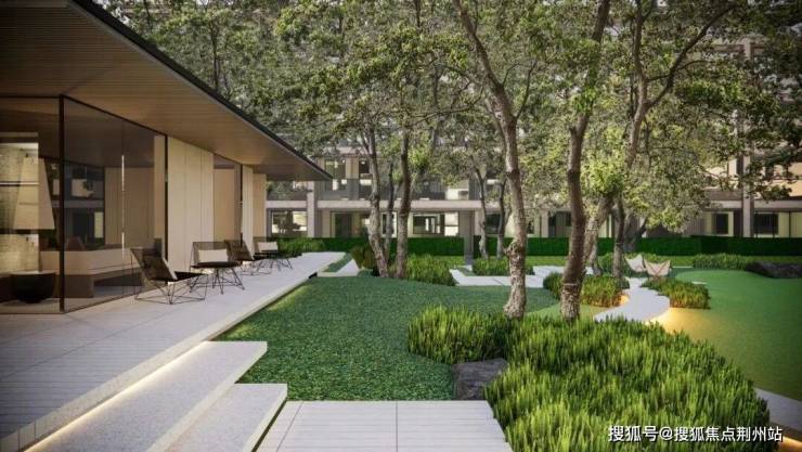 社区的设计思路是以安缦、丽思卡尔顿等精奢酒店的生活方式为标准,营造出极致松弛感的氛围。内部园林更是采用了现代手法,呈现出一个富有层次感与美感的社区。