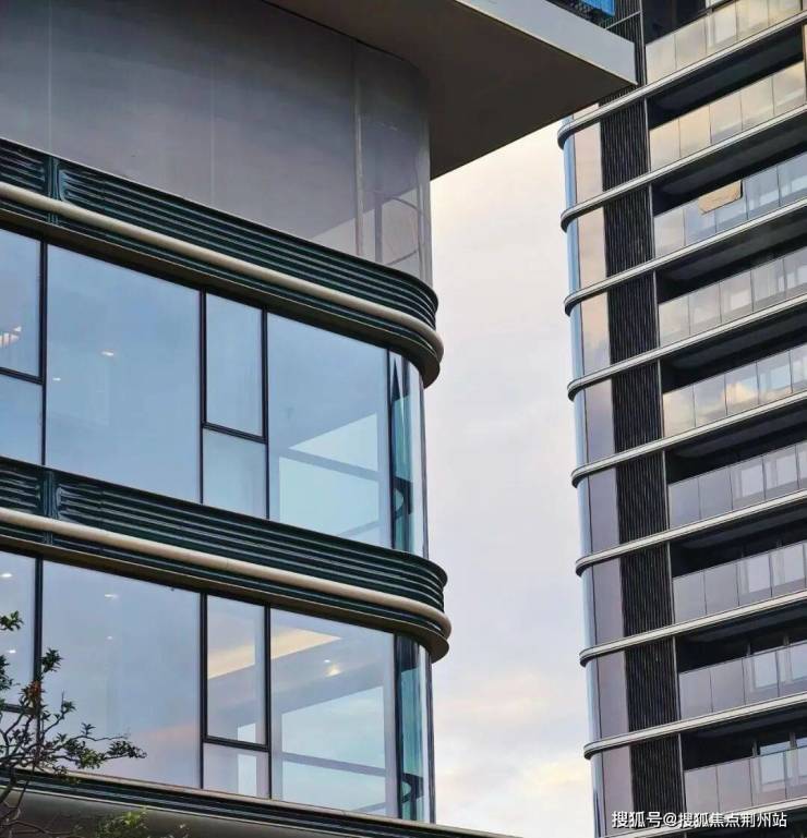 外立面:四面落地玻璃幕墙+270度转角无立柱曲面屏,采用金属线条勾勒,升级之处在于除了横向线条、纵向线条也加上了白色+绿色陶板,更大量的陶板配以掐丝镶嵌翠,强调细节,注重3D立体轮廓感