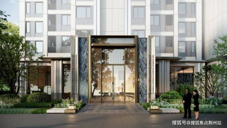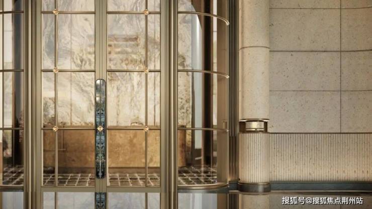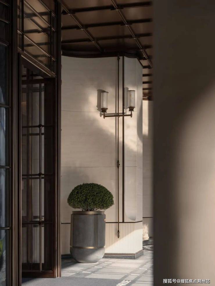大门处把手用弧形奢石和金属镶嵌交织,局部点缀琥珀,光彩熠熠共同营造摩登风华的奢华感和价值感。