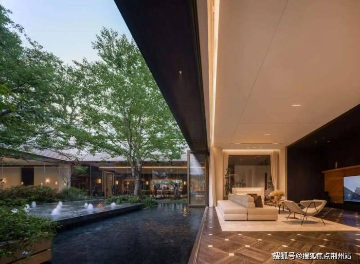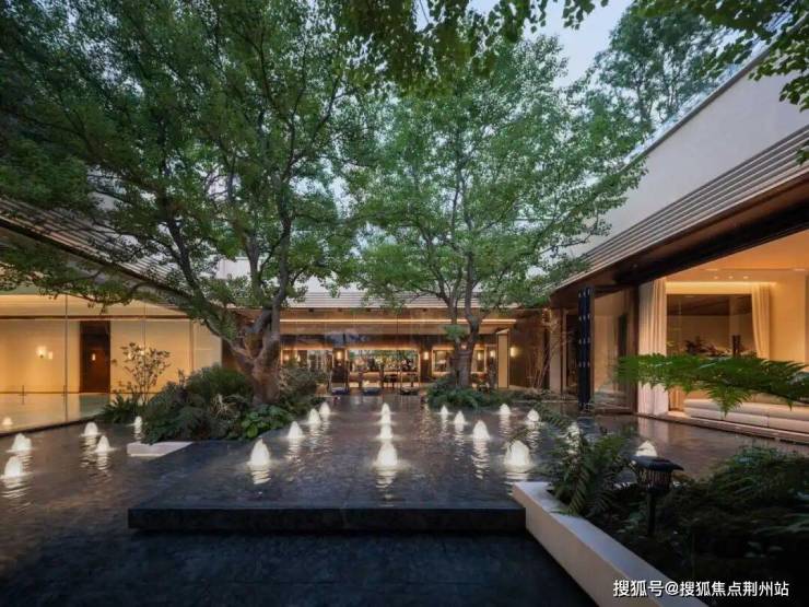 下沉庭院恰当的将自然光线和室外景观融入地下空间,打破压抑,让地下空间更有“呼吸感”。中央大面积镜面水景,水声和光影流动,围绕着庭院立面设计了多扇可开可合的大面积玻璃门扇,更有利于室内外空间交流互动,让室内外空间无界和谐共生。