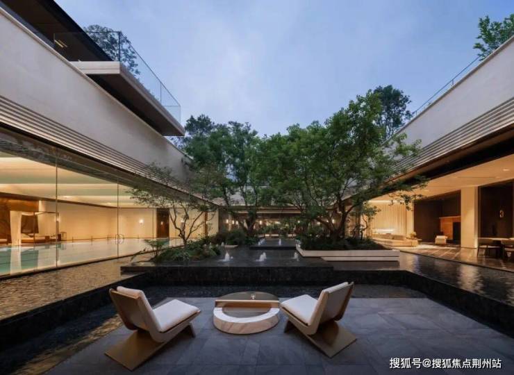 从环岛落客的超级界面,到酒店前厅的奢雅迎归,到社区大堂的空间转换,到接待会客的情绪舒缓,到途径建身会所的活力满满,到下沉庭院的无界交流,再到景观花园的闲庭信步,最后到架空层配套的安逸放松。这样的情绪切换、礼序递进,让回家成为一场穿越自然的度假式体验,在考究的场景中,感受高级的松弛感。