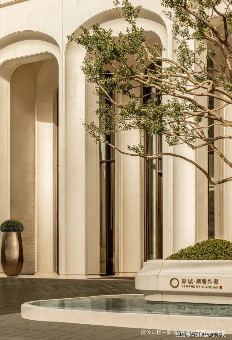 为了实现这份极致的弧线美学,潮鸣外滩在石材甄选与工艺实现上倾注了巨大心血。建筑基座严选贝金米黄石材,这种石灰石硬度高、耐水淋腐蚀,且自带温暖的贝壳纹理,避免了冷白色的疏离感。匠人通过手工打磨,赋予柱脚石材皮革般的细腻肌理,使其在光影下呈现顶级皮具般的哑光光泽。