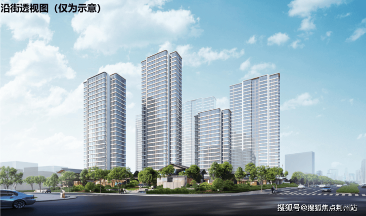 从沿街透视图来看,楼栋规划为封闭式的公建化外立面,加了一点类似于香槟金色的线条。
