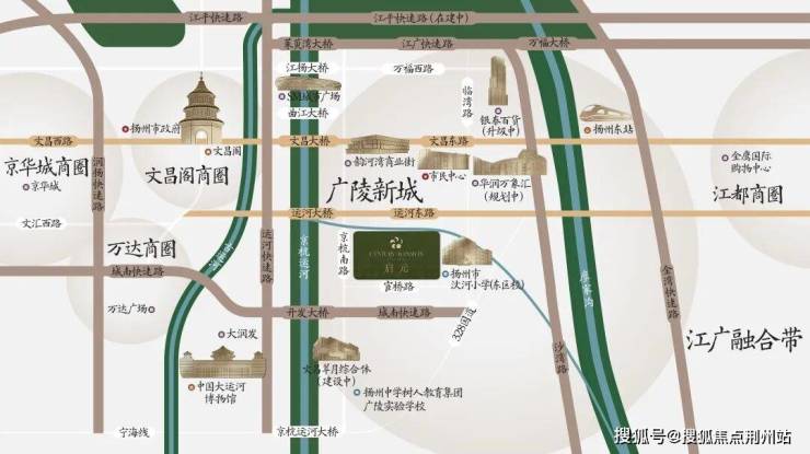 项目南侧则是城南快速路,是扬州的全新黄金动脉,沿线590、二城等多个板块飞速崛起。