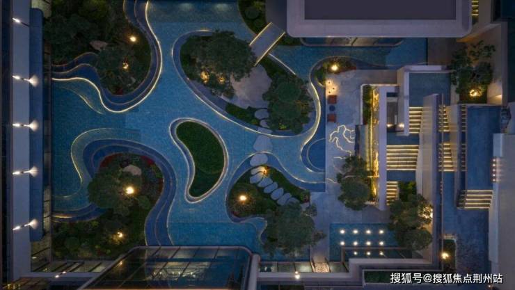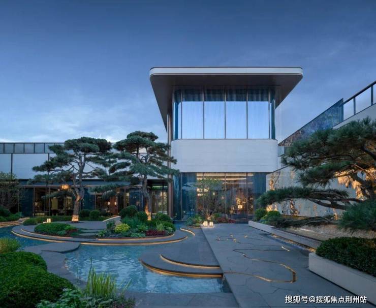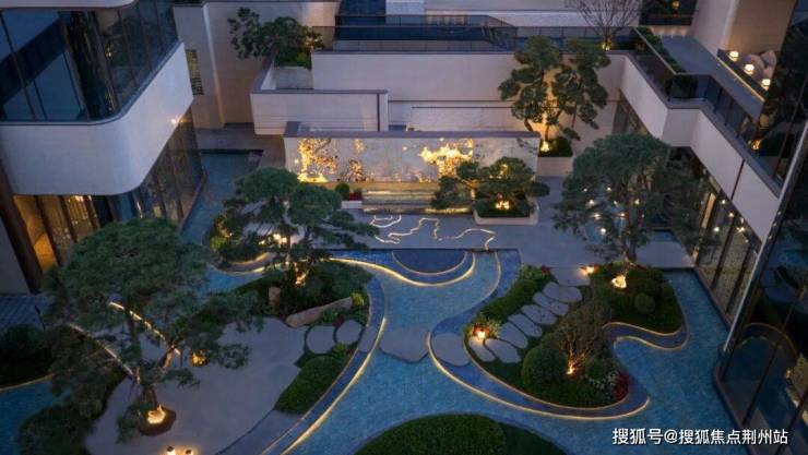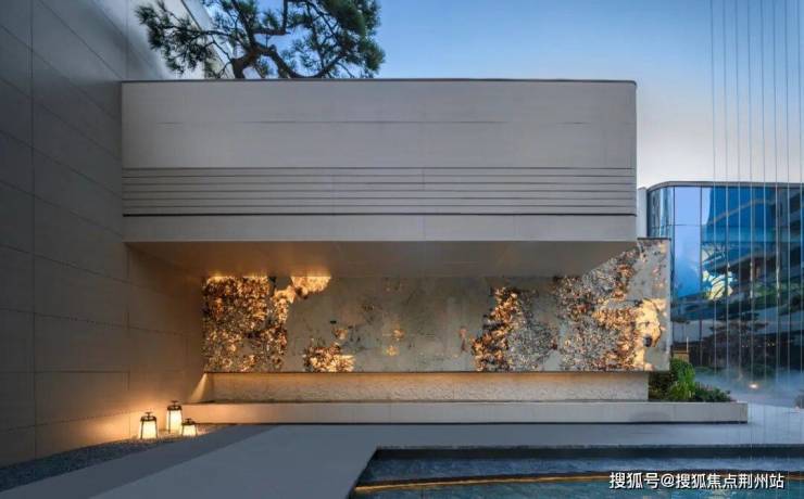 笃信自然即艺术的信仰,让景观园林成为流动的艺术画廊。巴西景泰蓝石材勾勒的门扉质感温润,马达加斯加蓝翡翠构筑的艺术景墙纹理,南美潘多拉透光跌水景墙,随光影流转呈现万千姿态,与十颗珍贵青松相互映衬,形成层次丰富的视觉盛宴。