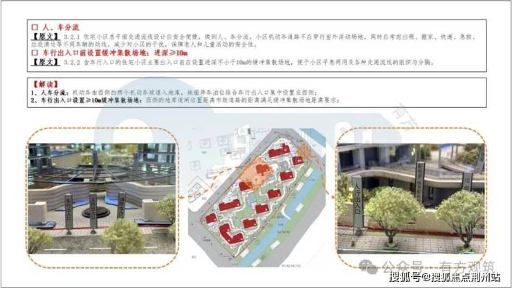 东侧的快递点位结合人行出入口设置,未考虑快递车临时停靠位置的空间预留,建议设置在北侧,与地上、地下双“中央车站”酒店式落客区设计,完善出入口功能,为业主带来更舒适的居住体验;