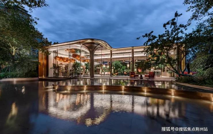 以百米范思哲黑奢石门廊+约28米的“华中第一高”飞瀑大堂+约210米长的恒温风雨连廊,构建出尊崇感和舒享感拉满的归家仪制;