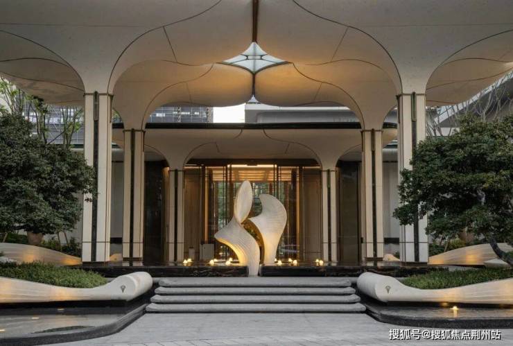 中心雕塑呼应蕙兰花瓣的灵动弧线,造型以飘逸之姿介入空间,在动与静之间建构出视觉韵律,为整体环境注入一脉流动的艺术气质。