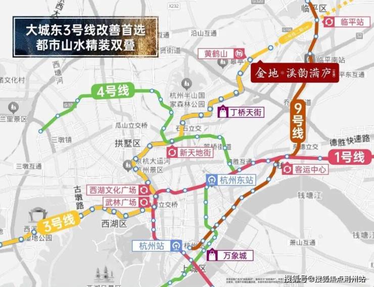 地铁3号线距离项目约500米,3站即天街,且在这条地铁线路上,还有7站换乘点,直达全杭市心,如武林广场、钱江新城等。加上秋石高架、留石高架、同协路、临丁—沈半路,4条主干道形成两纵两横立体路网,一路无缝衔接杭州东站、武林新城等核心板块。