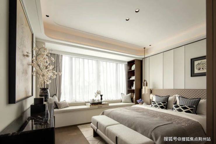 主卧是雅致与松弛共生的私域秘境,浅米色皮革软包墙与咖调床品、深色柜体交织,铺就温润高级的底色。金属线条隐于细节,悄悄勾勒精致感,床头暖光、软绒地毯、闲适床尾榻,再借白纱滤入的自然光,让主卧溢满湖的温柔。