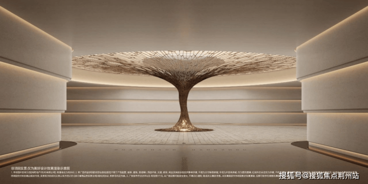 大门内外两重门厅景墙运用月光米黄石材近1000 方,搭配香槟金金属线条,汲取爱马仕全球旗舰店的双曲面叠墙造景手法,增加景墙奢华质感。