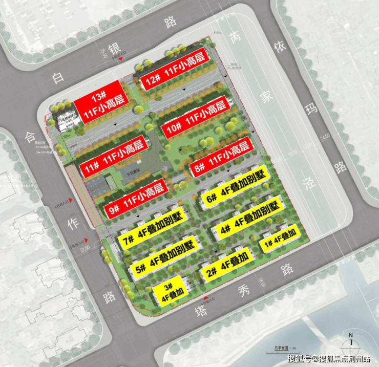 项目规划6栋11层洋房+7栋4层叠加,仅445户,纯低密改善定位。