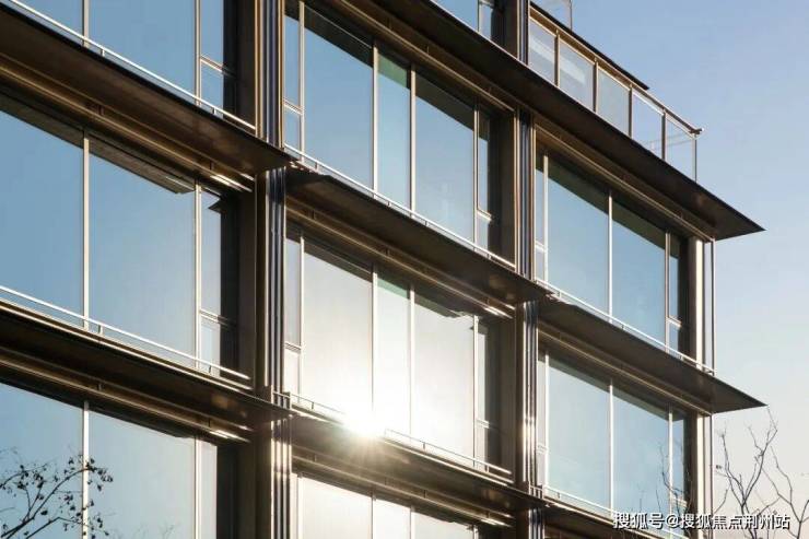 外立面的大面玻璃、铝板和石材上,镶嵌着一根根琉璃釉面蓝色陶板。灵感来自赫尔佐格&德梅隆为京杭大运河博物馆定制的蓝,模拟出水的轻盈波纹,光影流动。