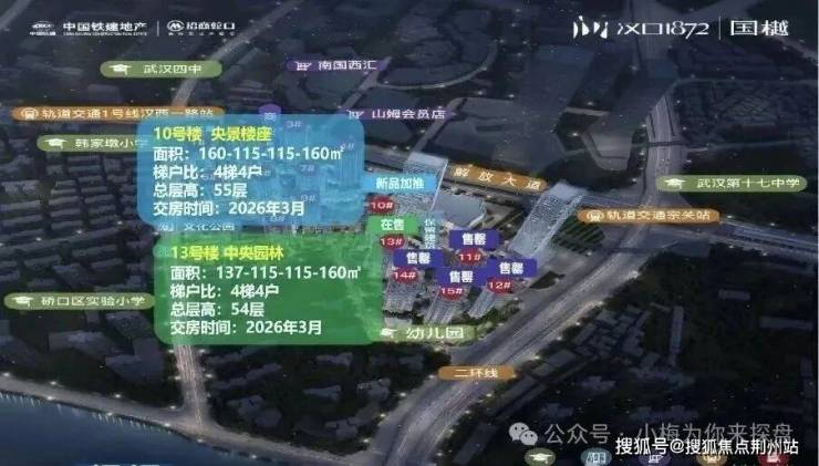 目前主推的二期地块中,除10、13号楼外,其它楼栋基本售罄。但这两栋所剩的房源也不多了啊。10号楼共55层,4梯4户,中间户为建面约115平,边户为建面约160平;13号楼共54层,4梯4户,中间户为建面约115平,边户为建面约137和建面约160平。这两栋楼都有一定的观汉江视角。