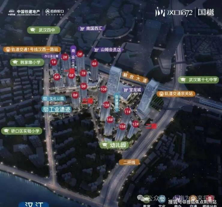 汉口1872位于硚口区解放大道与汉西一路交汇处,紧邻二环线,大区位上属于汉口核心硚口宗关片,离CBD也很近。该项目在2020年5月,招商局地产拿下硚口宗关P(2020)022号地块,成为当时的硚口新地王,楼面价约15633元/平,也就是现在的汉口1872项目。该项目目前招商占股51%,中国铁建占股49%。