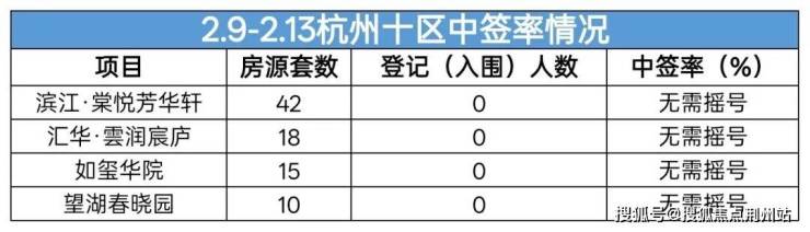 本周共有4个项目公示中签率结果,无一例外,全部因登记人数不足而“无需摇号”。