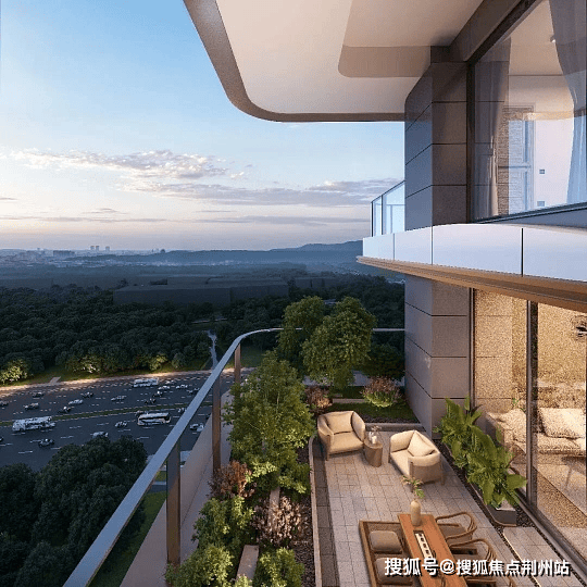空中花园设计:每户配备270°环幕空中花园,形成双层挑空结构,实现三面环景视野,兼顾景观共享与居家私密性。
