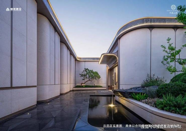 另外还有大量细节,比如迎客庭院的水钵选用山西黑原石打造,小区的地铺石采用堆釉甩点地铺石技术,中央水景处的双曲面树叶廊架工艺...... 示范区实景图,具体以合同等书面文件及实际交付为准
