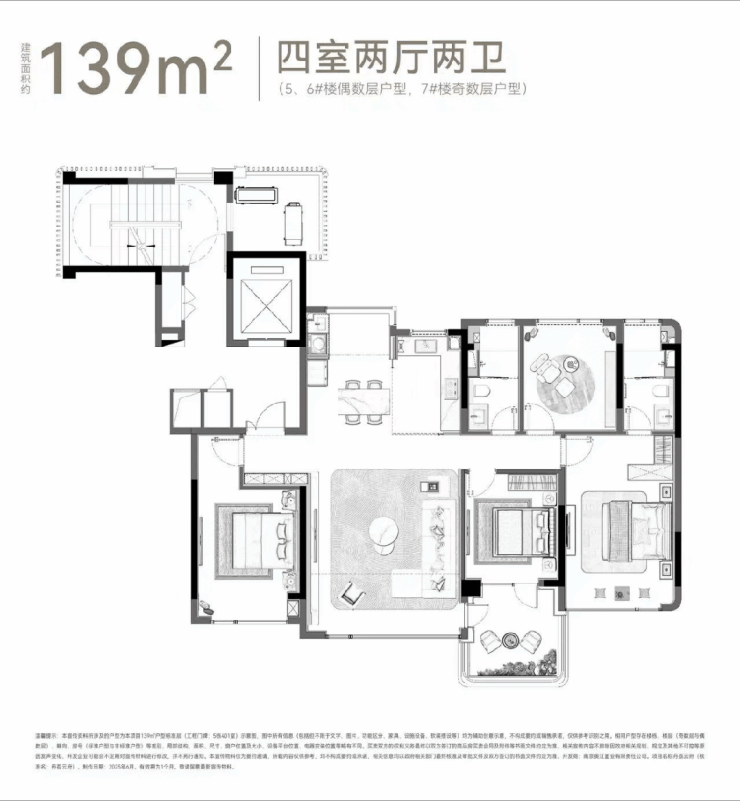 奥体建设以绿色健康人居为宗旨,通过奇偶错层设计,打造全新四代宅、户户享露台。打破传统空间的局限,可养花花草草,也可与三五好友品茗畅聊,尽享城市优雅生活。 内嵌阳台设计,LDKBG一体化空间格局,客厅、餐厅、厨房、阳台、露台无缝连接,极大扩展生活空间。实现空间使用率约95-97%。 该户型可以说是目前入手河西中的最小门槛。户型门槛小了,总价也相对较低。目前河西中部绿博园板块,总价1000万以内的新房产品,只有丹荔云府的139㎡户型可以选择。 未来板块内可能也不会有这种“小”面积了。未来河西中主力面积估计至少143㎡、甚至160㎡起步。比如农研所地块,基本会做180㎡起步的大平层。
