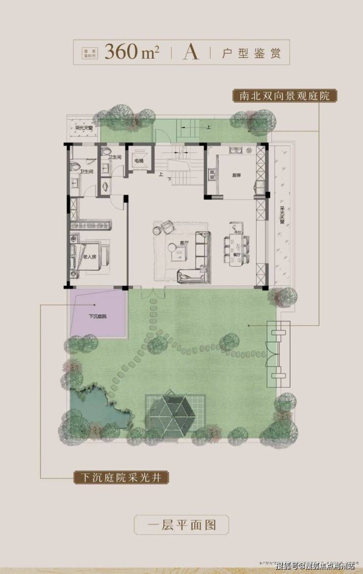 低密生活的精粹,庭院要占半壁江山,秦塘和颂建面约360㎡院墅,匠造约136㎡山水庭院(31栋01室)这是归家途中的的第一重风景,也是连接自然与生活的序章。一楼会客厅打造LDK一体化阔厅,约9.1米奢阔面宽,尺度跃升之上,既满足日常家庭互动,亦从容应对宴请聚会场景。考量空间与庭院的互动关系,特别置入全景落地窗,让景与园、宅与院彼此相融。