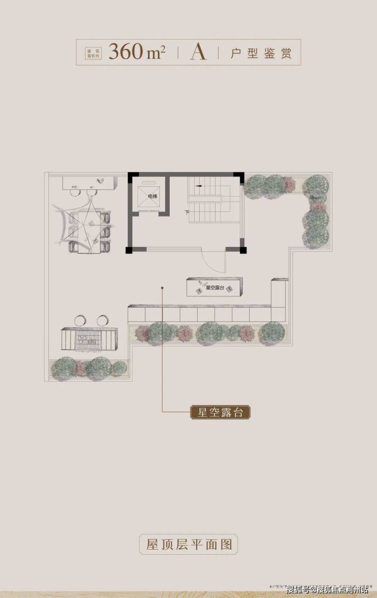 建筑面积约360㎡院墅共打造约105㎡露台使用空间(31栋01室),其中顶层摘星露台,将天地景致尽揽怀中,或安然独处,或与至交共聚,揽景聚友,自在随心。