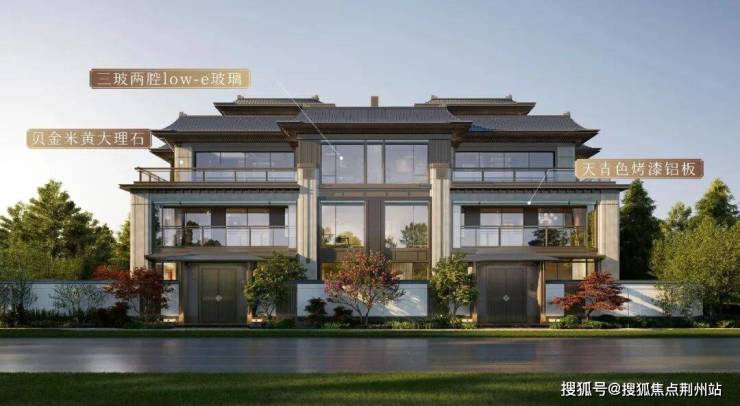 秦塘和颂深研宋式建筑的威仪风骨与秩序美学,将这份古典神韵融入空间营造,同时以现代材质为笔,南向外立面融萃现代审美的三玻两腔low-e玻璃,搭配贝金米黄大理石、点缀天青色烤漆铝板,最终实现宋代建筑美学的当代新生。