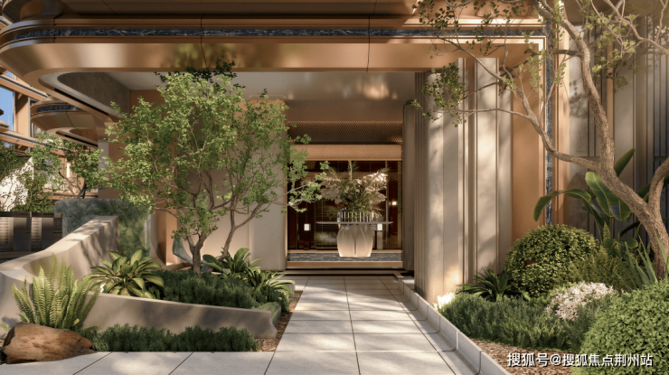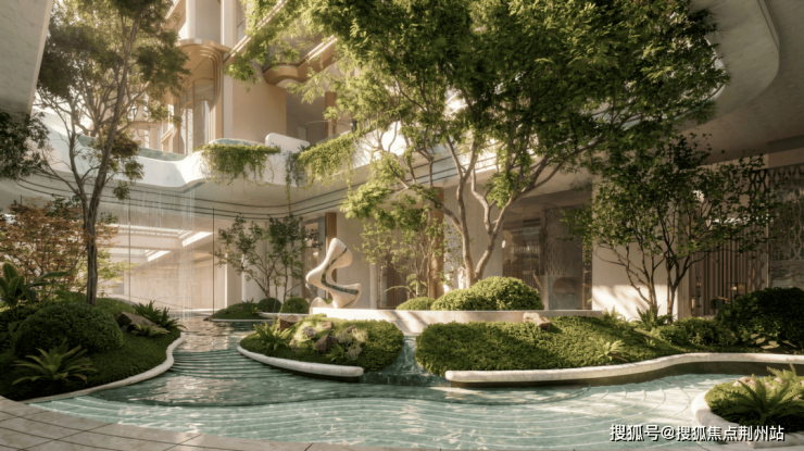 项目利用这个高差打造了下沉式庭院、垂直绿化、微地形景观,在寸土寸金的滨江核心区,能做出这样的森系园林实属奢侈。