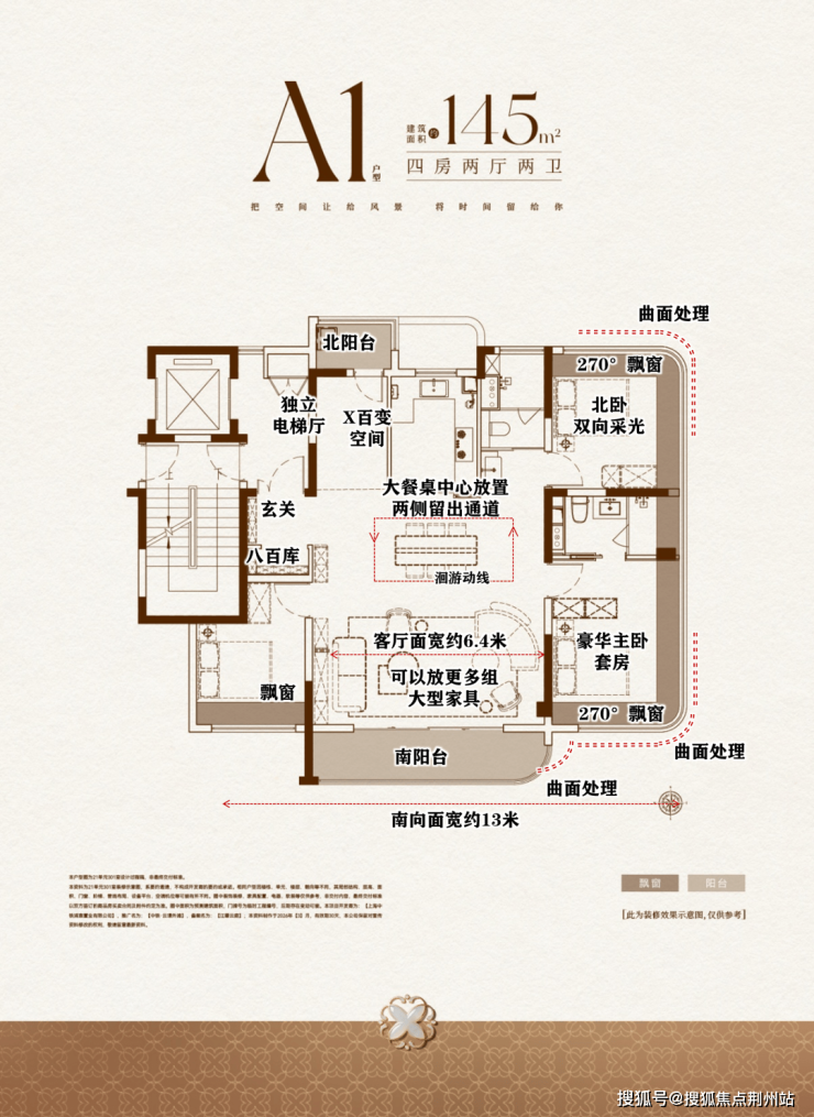 3、建面约145㎡:约6.4米客厅面宽+X空间,一步到位的成长型洋房