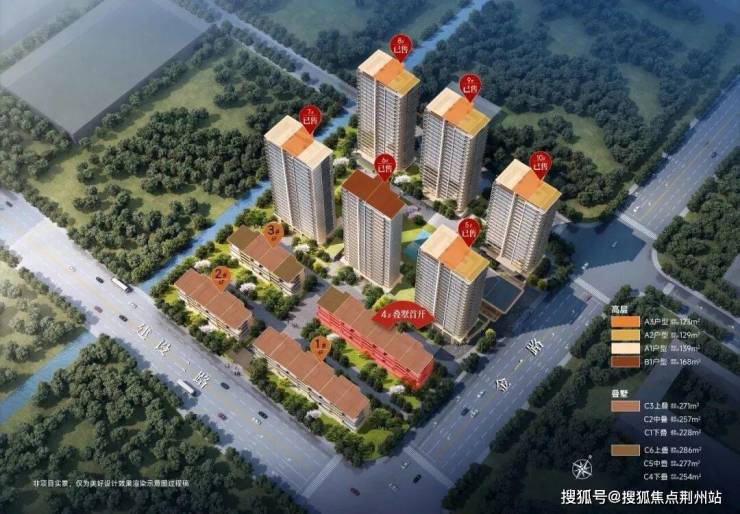 赋江南府容积率仅1.3,整盘规划14幢4F的联排,以及一处代建邻里中心,主推建面约299—439㎡户型。