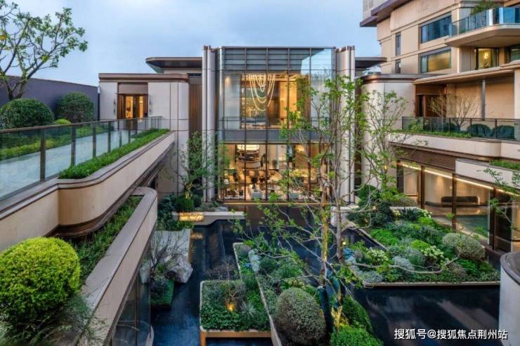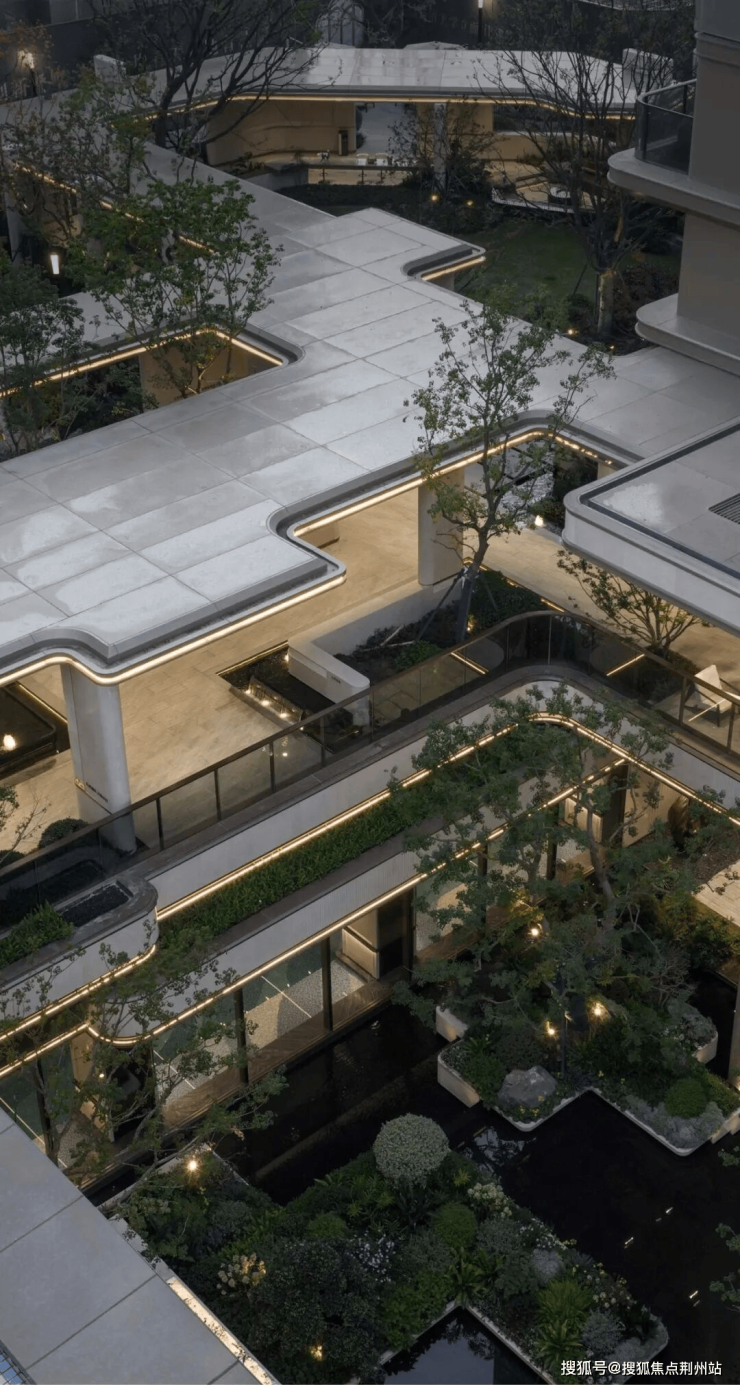 穿过气派的门头,超10米高差叠水飞瀑纵贯上下,恢弘而又独具特色,让视线自然过渡到独立会所。这一下沉式社交空间与入口景观形成巧妙呼应,完美阐述了“内外兼修”的设计哲学。