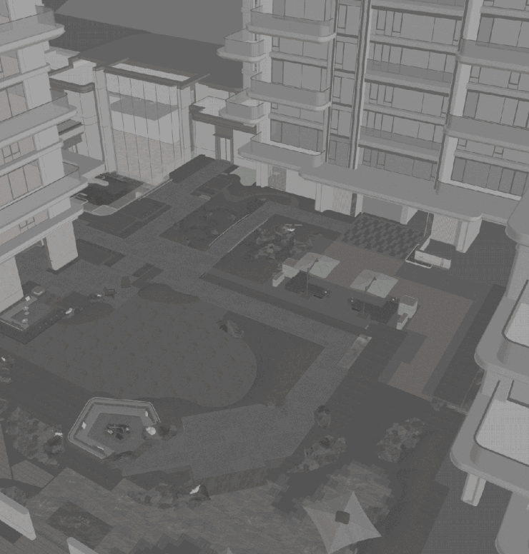 大门以景墙与水景延展视觉张力,诠释酒店式高定落客礼仪,兼具江南贵雅与显赫气度。三重归家仪式层层递进,气势恢宏。