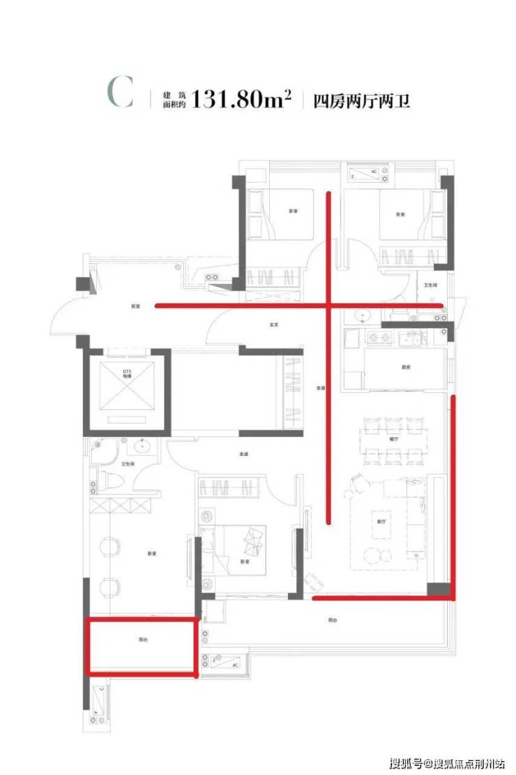 如果把南向大阳台全纳入公区,甚至实现37平超大横厅!