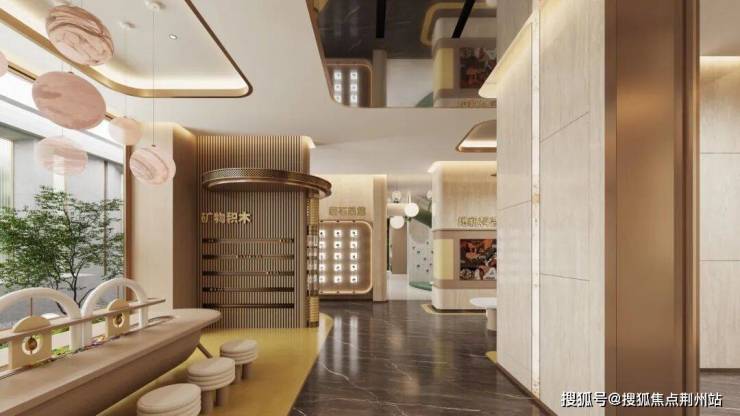 在公区,他有气势恢宏的围墙,选用珍贵石材搭配公建化立面,去塑造社区的高级感和地标感