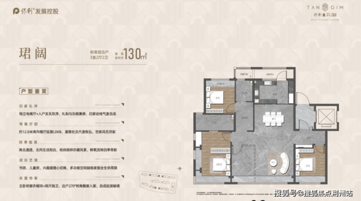 保利津门天珺做了107-169㎡四个户型,最抢眼,也是我最喜欢的,非130莫属。面积不算夸张,细节绝对值得咂摸,改善的尺度、家庭周期变化的弹性、个性空间需求全能满足。
