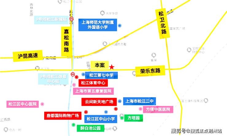 交通方面,项目距离9号线松江体育中心站直线距离约1.2km,步行约20分钟可达。同时紧邻荣乐东路,旁边还有嘉松南路、松卫北路、沪昆高速等主要道路,自驾出行十分便捷。
