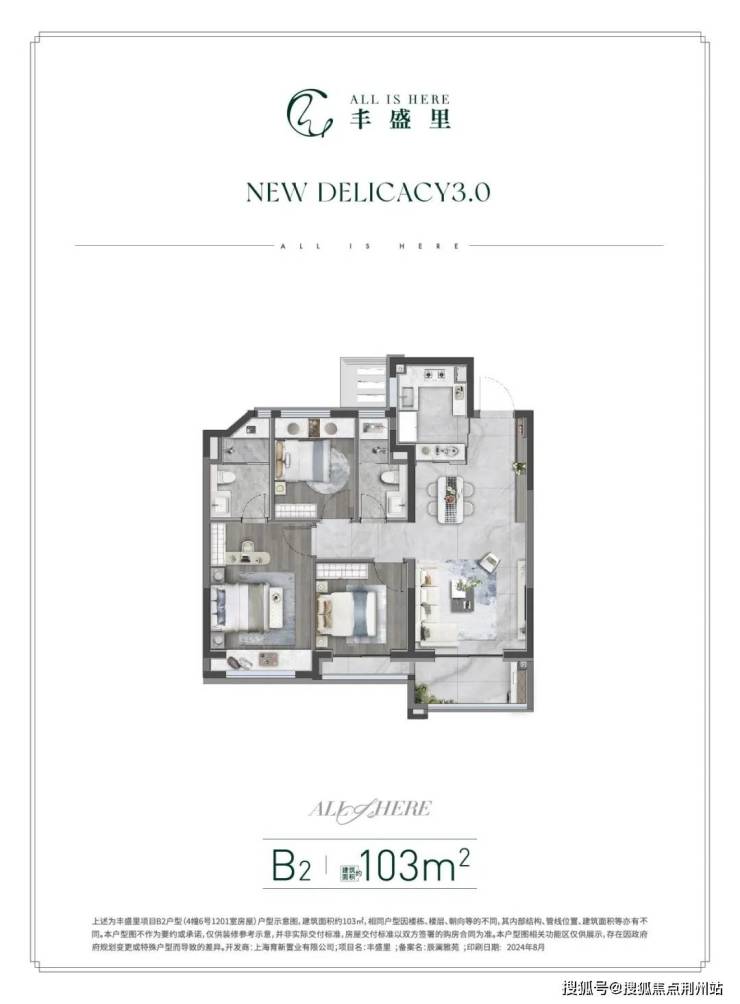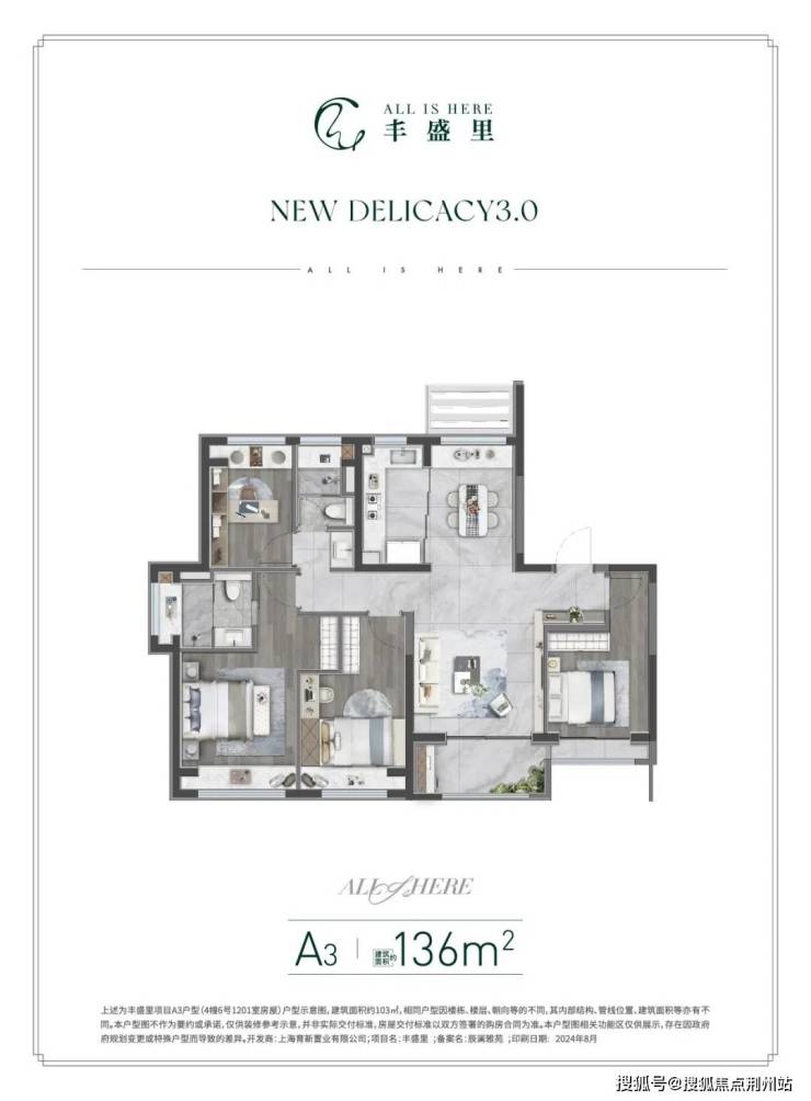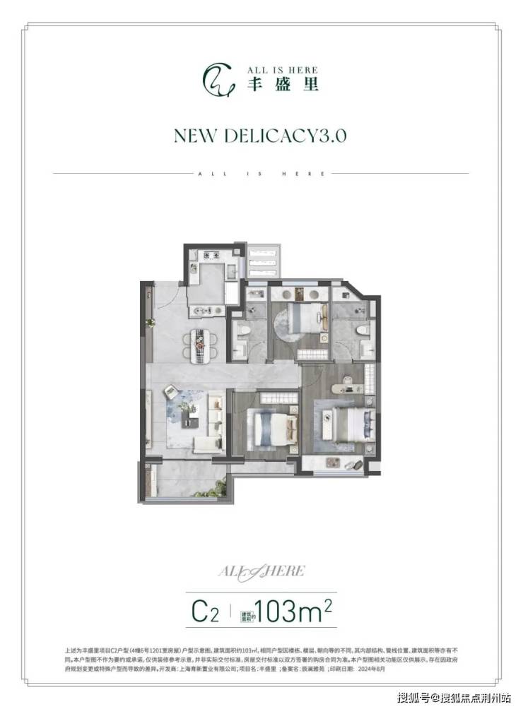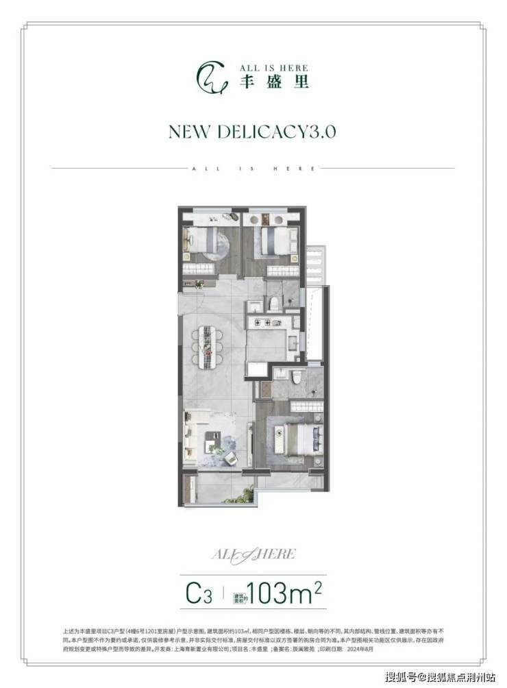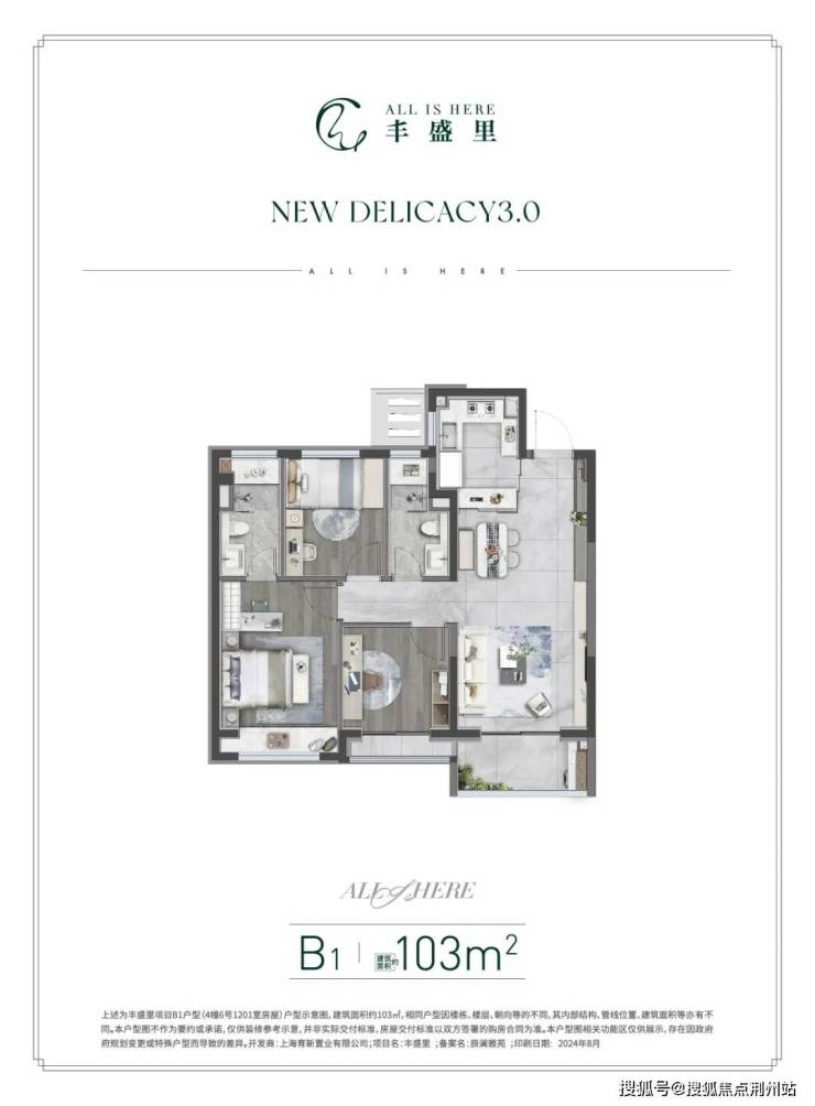 项目主推建筑面积约103㎡三室、建筑面积约136㎡四室,100%精装交付!