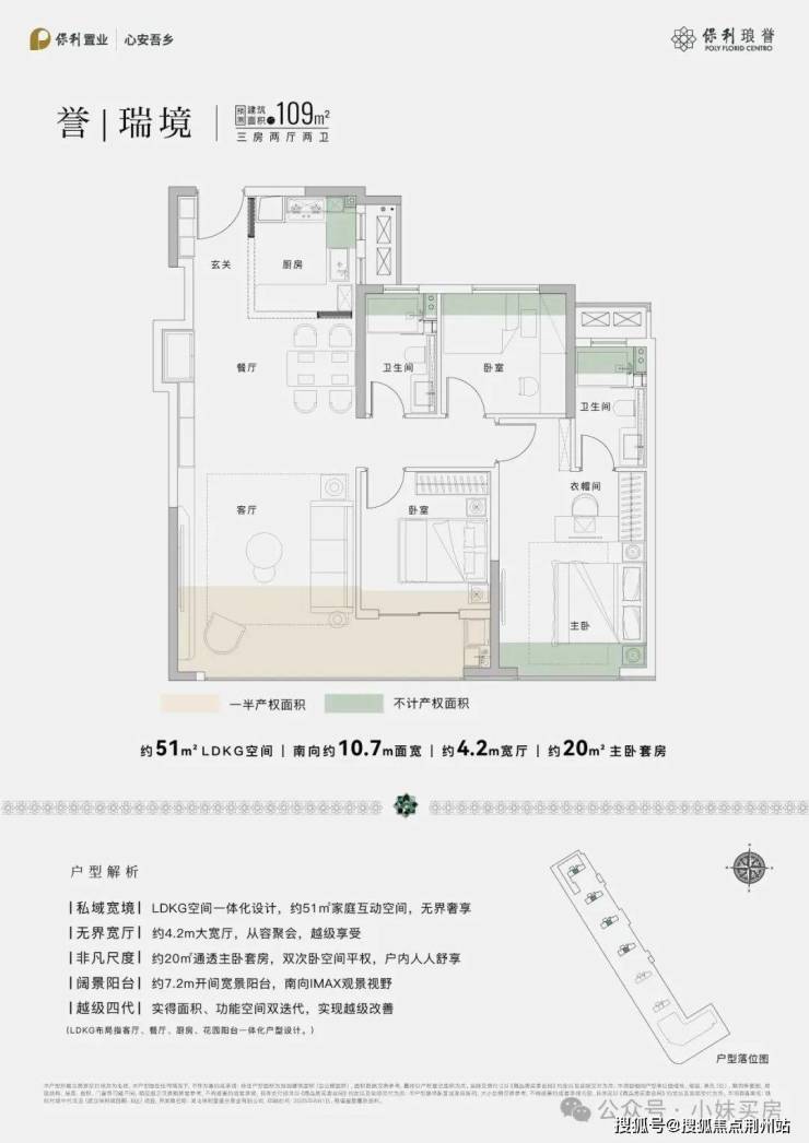即便是建面约109㎡入门级户型,也能实现约51㎡LDKG一体化公区+20㎡主卧,堪比常规130㎡+改善户型格局。