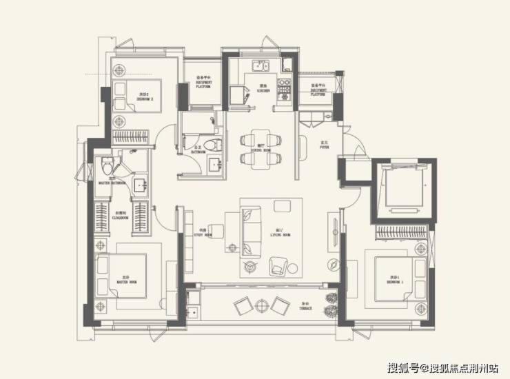 解决方案只能是,要么小书房隔断隔开或者做四房,南侧排布晾晒空间,但缺憾就是起居空间的气派感将大打折扣。要么全部用烘干机解决问题……