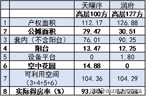 比如天曜序建面约110㎡基本上对标润府127㎡。