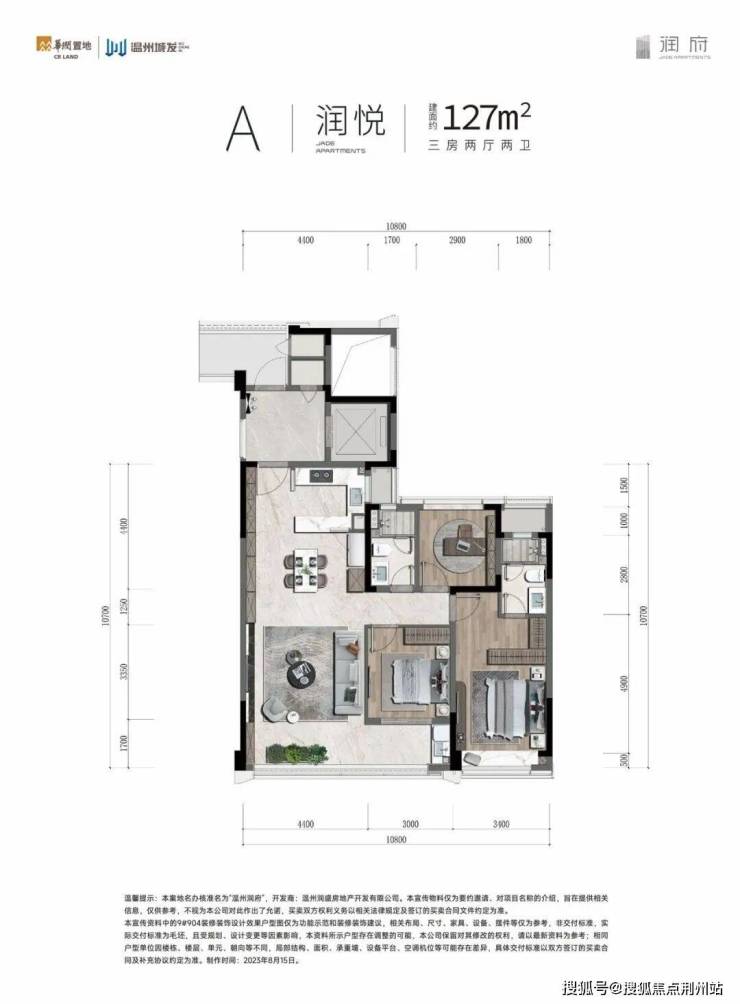 ▲温州润府建面约127方户型图示意