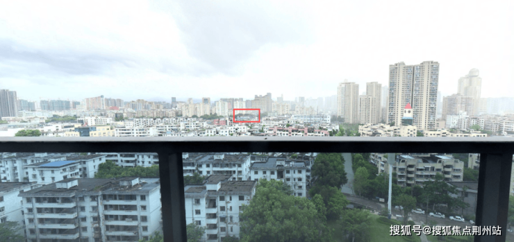 ▲项目隔壁地块滨江壹号第一排中楼层实景示意。红框处为洪殿元弼道观,视线内影响不是特别大
