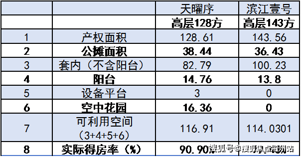▲相关指标对比,数据或有误差,仅供参考,以实际为准。阳台含半赠送,飘窗和放置设备的设备平台未计入可利用空间。天曜序设备平台赠送面积为预估。