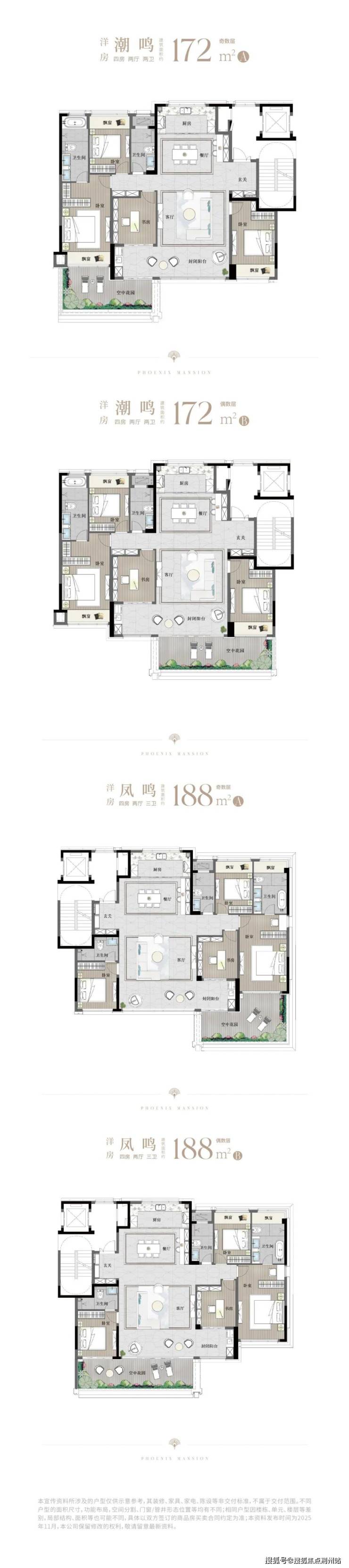 LDKBG一体化场景设计,将客厅、餐厅、厨房、阳台及露台花园流畅联动,让家庭成员的互动更紧密,温情在空间中自然流淌。南向双行政套房设计,充分满足新一代家庭对空间平权与私密性的高阶需求。奢阔主套配置星级酒店同款步入式衣帽间与独立卫浴,演绎主人专属的尊崇格调;南向次卧配备独立卫浴,外连约35-60㎡空中花园,花香绿意环绕,实现与自然的浪漫邂逅,安放每一位家庭成员的理想生活。