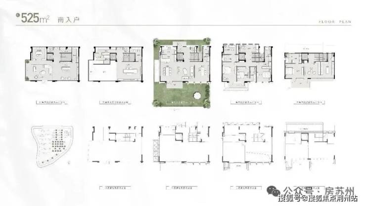 下面直接来看联排户型,约415-455-525㎡三个主力面积段,都是上下5层,南北双花园。一层层高约3.8米,二层约3.4米,三层约3.5-3.9米;