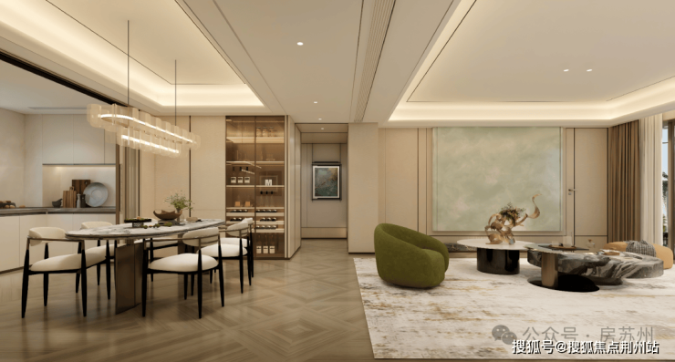 其中中央景观带约2000㎡,涵盖林下休闲区、阳光草坪、秘境水院,并设轻奢会客厅与家庭会客厅。