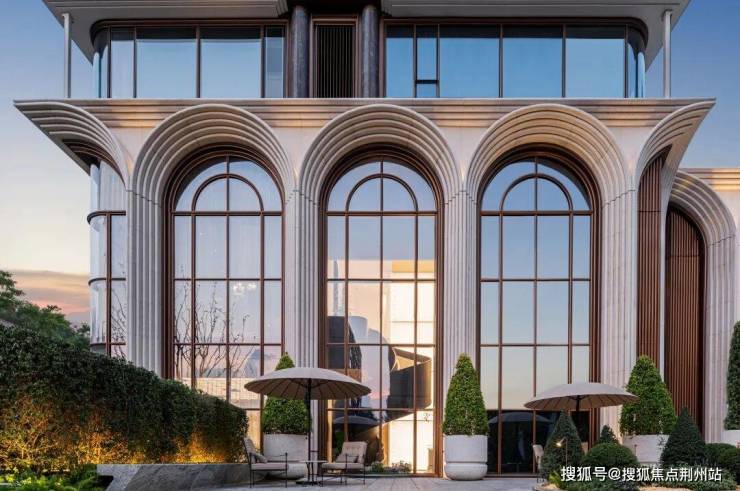 咏印明庐用自己的实践重新定义了下一个十年豪宅应有的样子:贝金米黄石材雕琢的意式拱券,搭配古铜色金属线条和大面玻璃,远看是运河畔一部恢弘的秩序史诗,近观则展现出东西方美学精髓的完美融合。