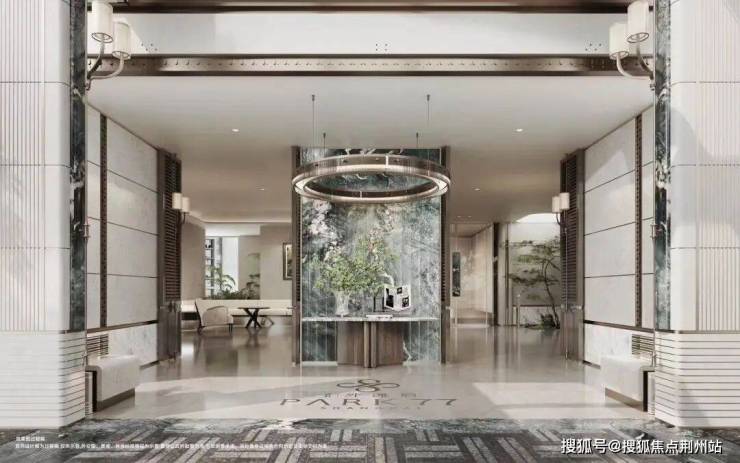 三重仪序的归家动线,始于酒店式艺术府门,鎏金翡绿奢石与艺术景墙构成了第一道屏障,瞬间隔离街市嘈杂;