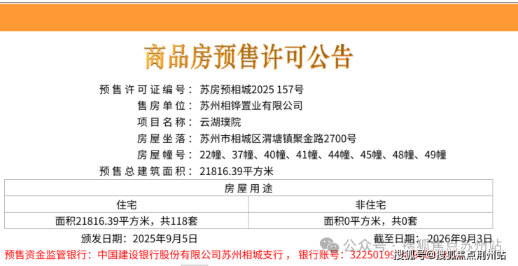 最新,位于相城的云湖璞院再次取证,共118套房源。
