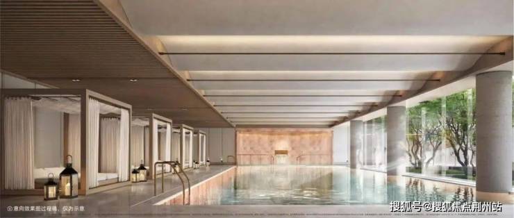 下沉式会所,融萃健身房、瑜伽室、会所泳池等高阶生活形,自然光廊设计打破室内、建筑、景观原有的分界线,生活无界延伸。