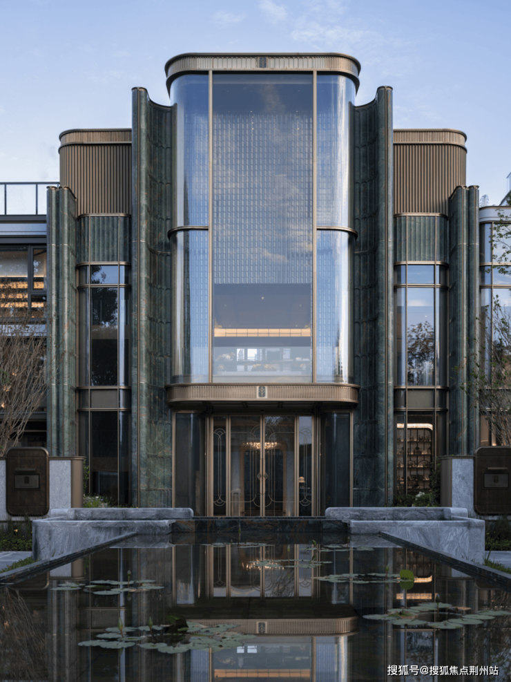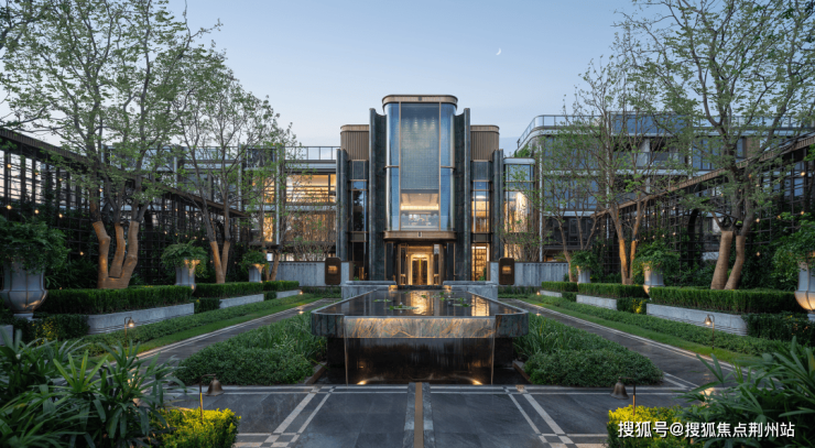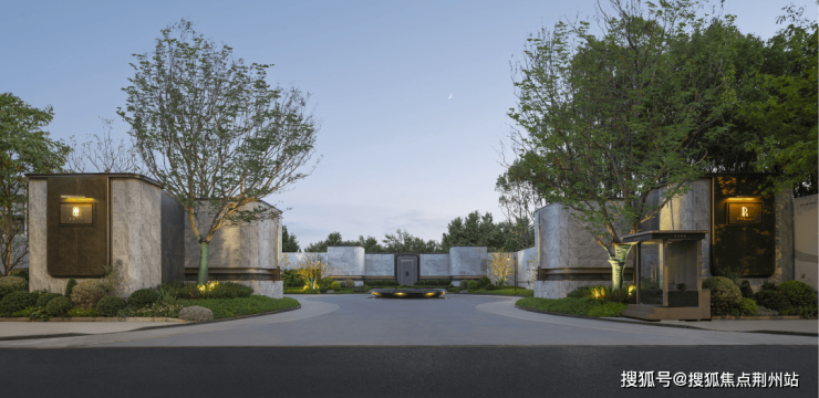11米超宽车行入口,以宽阔尺度迎接归途;5米高迎宾景墙内,睡莲静池环岛洗尘,更以酒店风格设计的铭牌传统镌刻门第荣光,铺陈归家的尊贵序章。